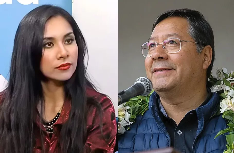 Luis Arce y la denunciante, Brenda Lafuente. Foto: BTV y RRSS del mandatario