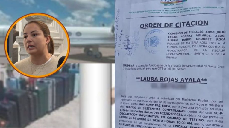 Rojas, quien también es candidata a concejala en Santa Cruz, fue convocada para colaborar con las pesquisas que se desprenden de la detección de droga en un galpón que, según las investigaciones preliminares, estaría relacionado con un lote de 32 maletas ingresadas al país sin revisión aduanera tras su llegada desde Estados Unidos. En su declaración, la exautoridad se limitó a señalar que se encuentra para cumplir con el llamado del Ministerio Público.