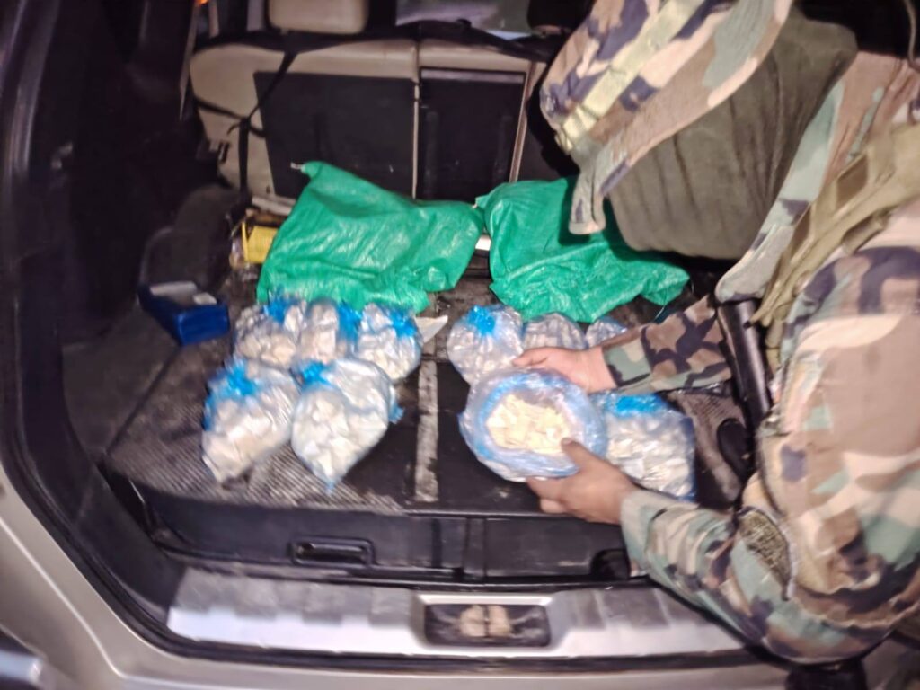 Durante el procedimiento, las autoridades interceptaron un vehículo con placa artesanal que transportaba paquetes envueltos con cinta adhesiva transparente. Tras la prueba de campo, se confirmó que la sustancia era cocaína.