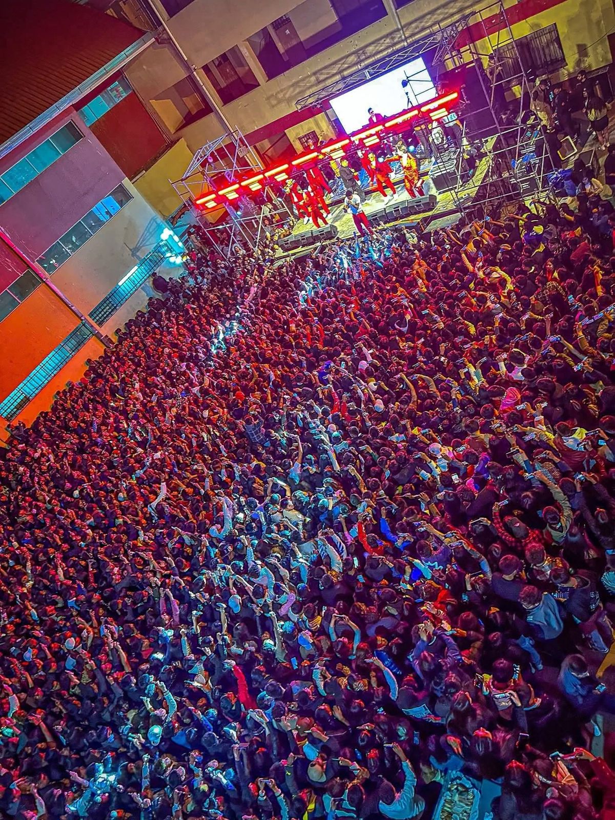 Posteriormente, durante el desarrollo del evento, ocurrió una segunda avalancha, esta vez al interior del establecimiento. El hecho fue provocado por Percy Ríos, vocalista de la agrupación Sangre Cumbiera, quien se lanzó desde el escenario hacia el público, generando un nuevo tumulto.